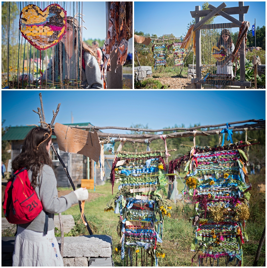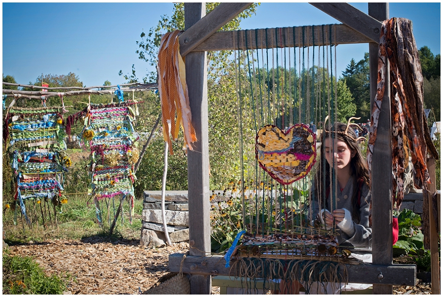Surprisingly I do not have tons of images from the fair! I captured moments of Meadow at her booth (Meadow Rain Creations) with my phone, but I left my camera at home that day so that I could focus on helping her set up and all of that. You can see images from her booth on my instagram feed, @PhyllisMeredith2 BUT my personal favorite part of the fair is the amazing Earth Loom that stands permanently in a little garden. Each day a weaving is created on the loom out of scrap fabric, pieces of nature and community love. The weaving from Friday and Saturday hang behind the Sunday weaving Meadow is working on here. We got to the fair nice and early on Sunday morning and made a heart. We visited the loom over the day, and the heart was still sitting in the middle of the weaving at the end of the day on Sunday. I do wonder where the weaving lives now.