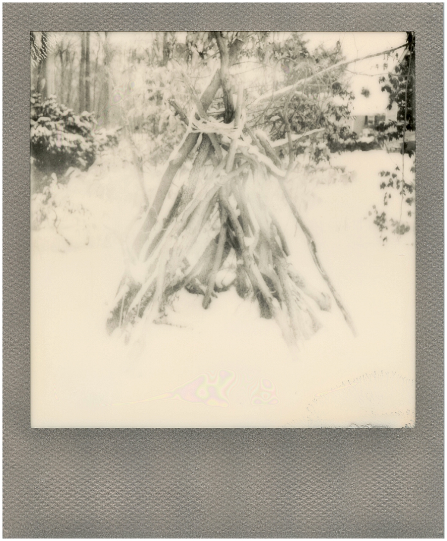 Silver Frame, Expired SX-70 film, outside in the cold, and inside with a flash light for light.