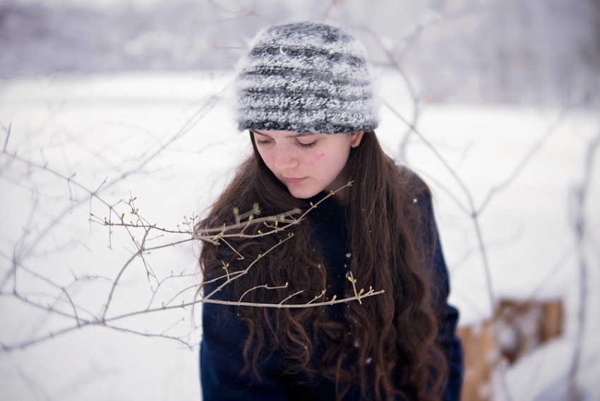 I am not one who likes the cold. I dread winter, dread the cold. But I do get pulled into a nice snowy scene every once in a while. Yesterday’s beautiful sticky snow, sticking on all of the tree trunks and lighting up a grey cold day called me out. And I wanted to really give the Velvet 56 a try, so we bundled up and headed out. I love how the lens picked up on the falling snow and made circles on Meadow’s coat and face. I love how dreamy the background looks. As someone who struggles with the digital look of digital photography, but then also struggles with the cost of film… I may have found my soul mate in the Velvet 56.